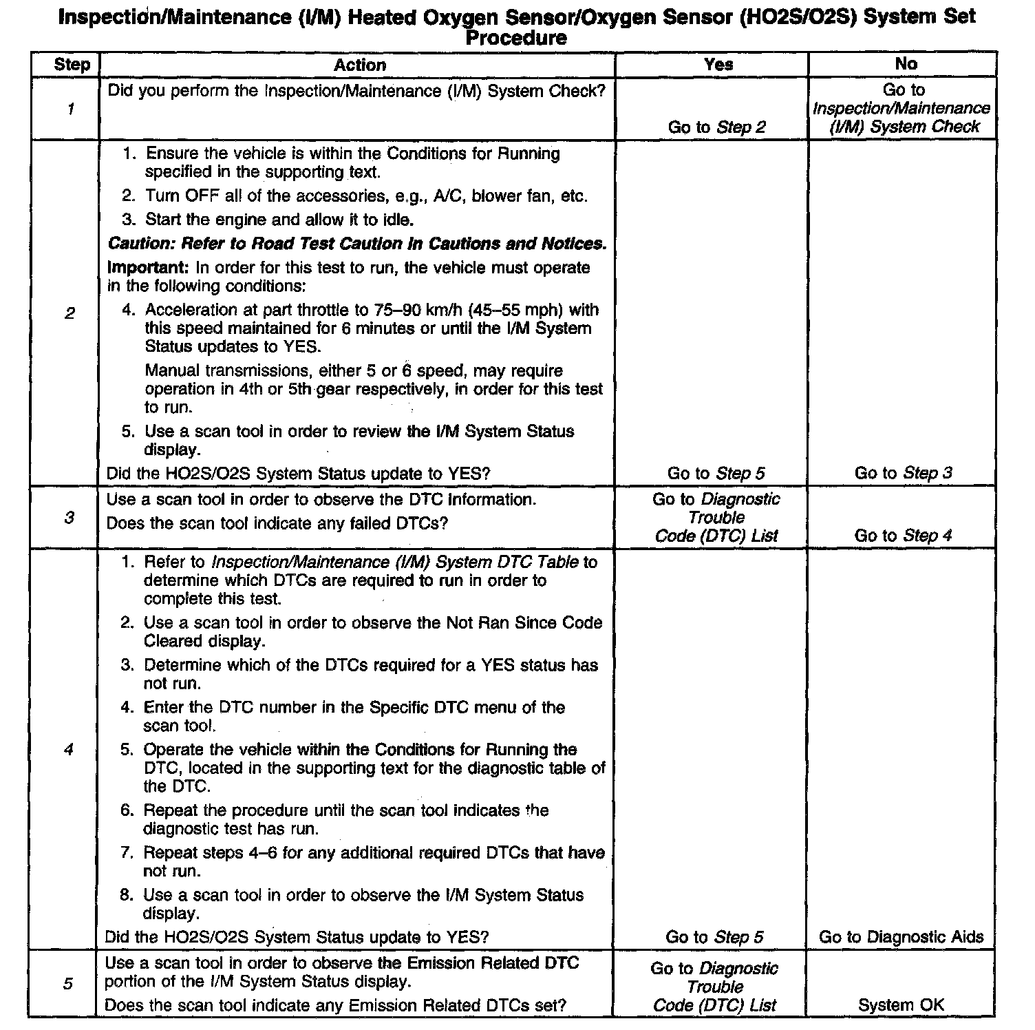 I/M Heated Oxygen SEN/Oxygen SEN (HO2S/O2S) SYS Set Procedure