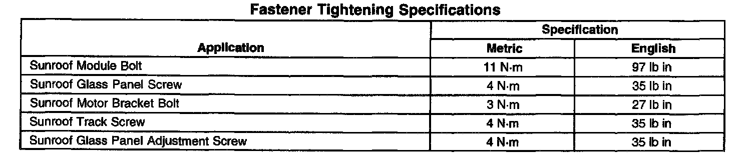 Fastener Tightening Specifications: