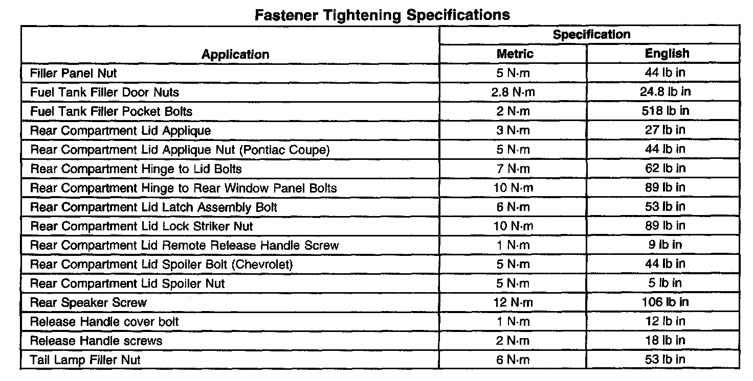 Fastener Tightening Specifications: