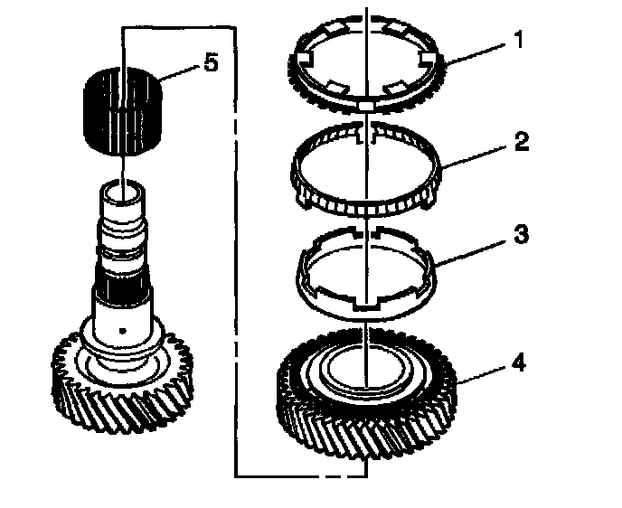 3. Install the 2nd gear inner cone (3).