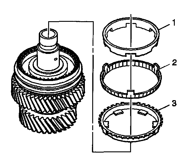 8. Install the 1st gear outer cone (3).
