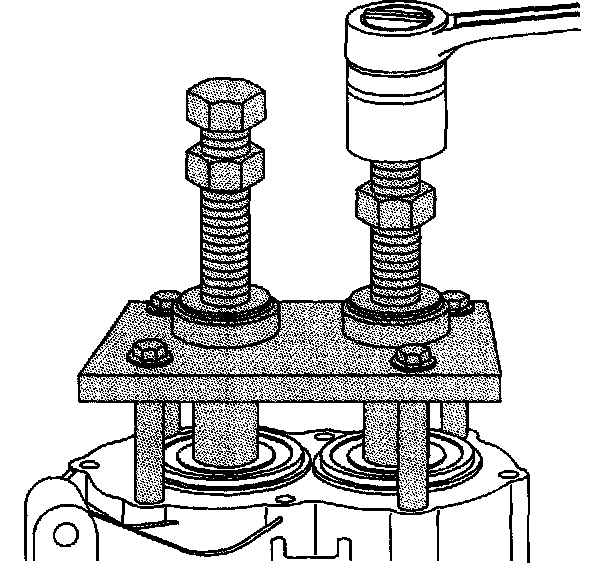 Important: Alternate the tightening of the jack screws on the J 44376 to ensure proper removal of the transaxle case.