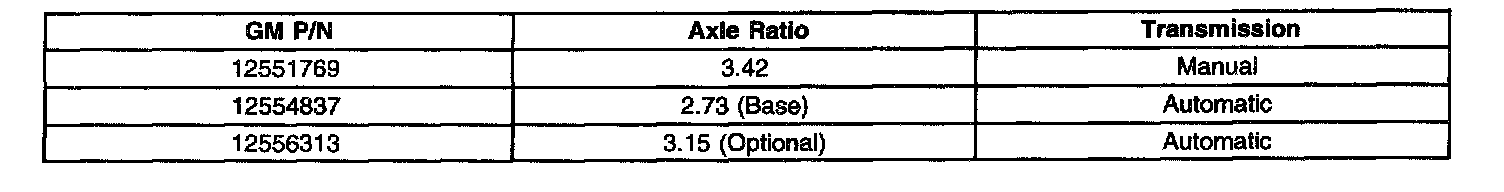 Available Axle Ratios