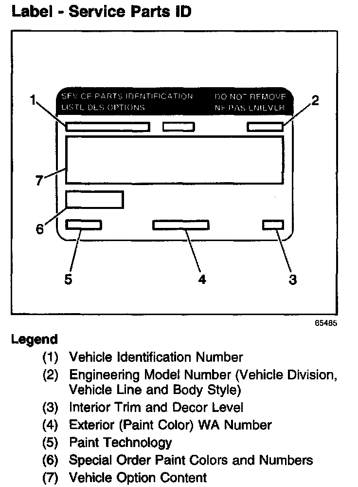 The service parts identification label is used to identify the original equipment options built into the specific vehicle being serviced. The option content of a vehicle is very important information to properly service the vehicle.