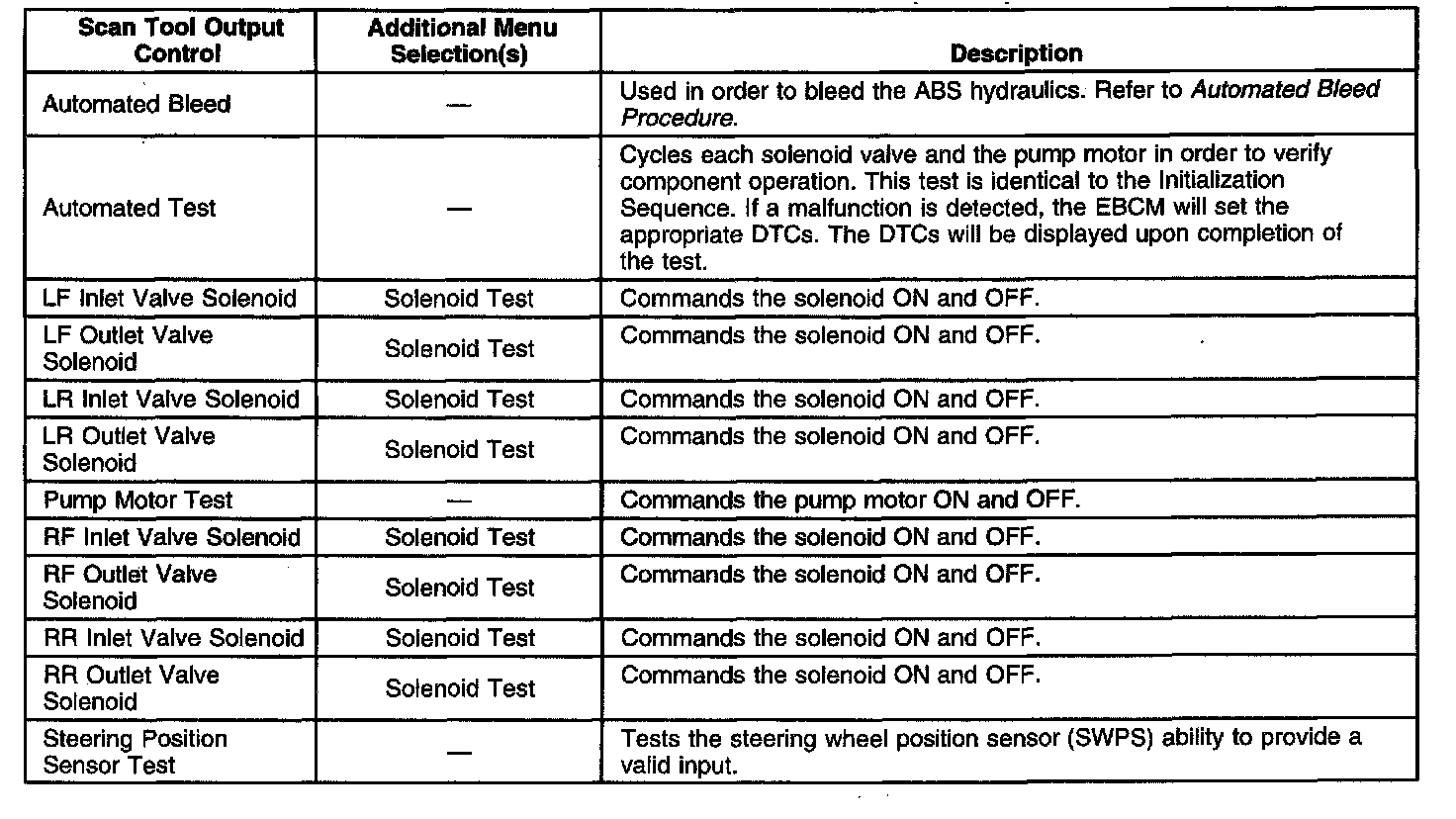 Scan Tool Output Controls
