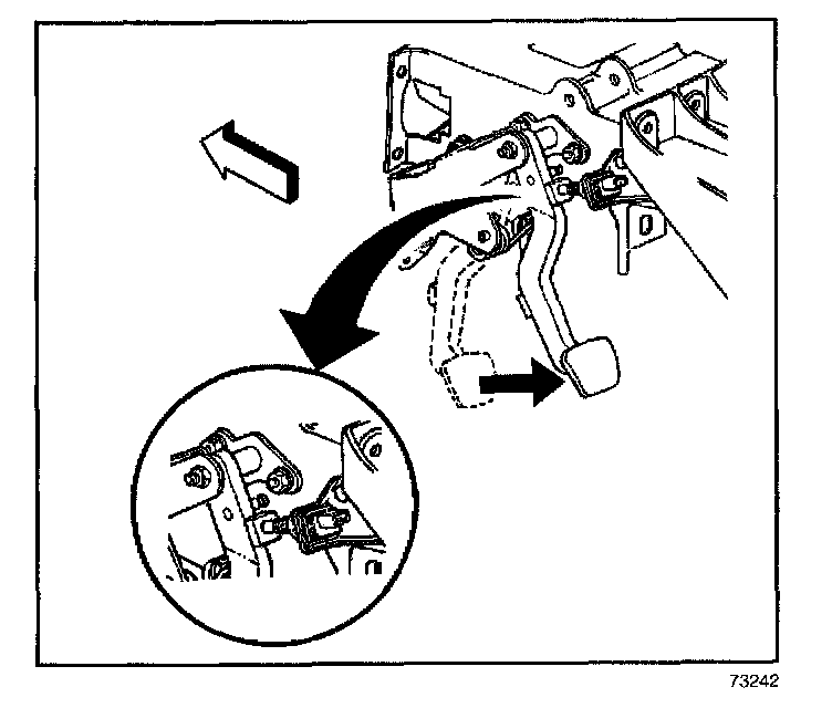 3. Adjust the cruise control release switch. Grasp the clutch pedal and pull fully rearward against the pedal stop. Audible clicks may be heard as the switch moves into the adjusted position.