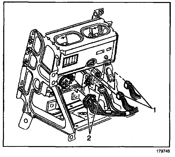 7. Disconnect the electrical connectors (1) from the HVAC control module.