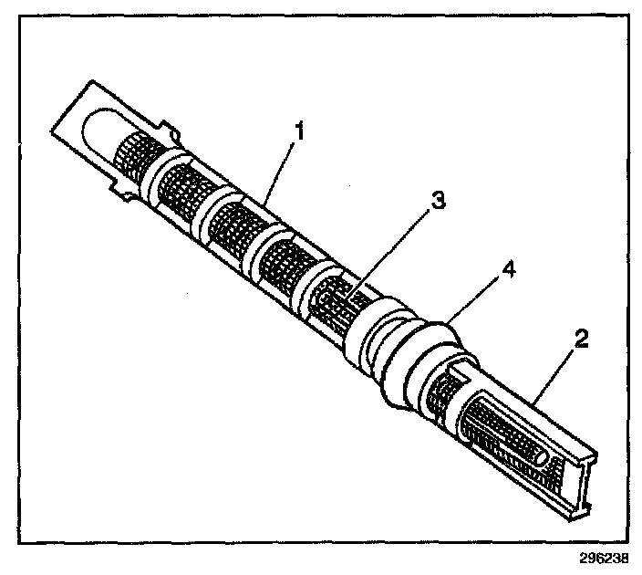 ^ Filter screen (1) coated with metal chips, flakes or slivers; coating may be removed with low pressure shop air and reused if cleaned satisfactorily