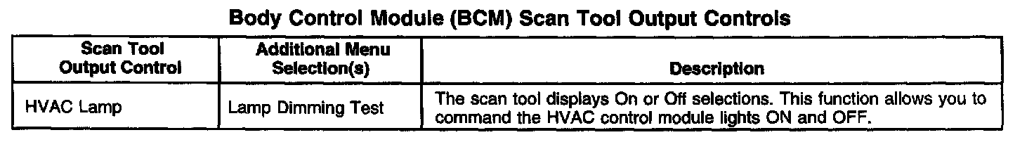 Body Control Module (BCM) Scan Tool Output Controls: