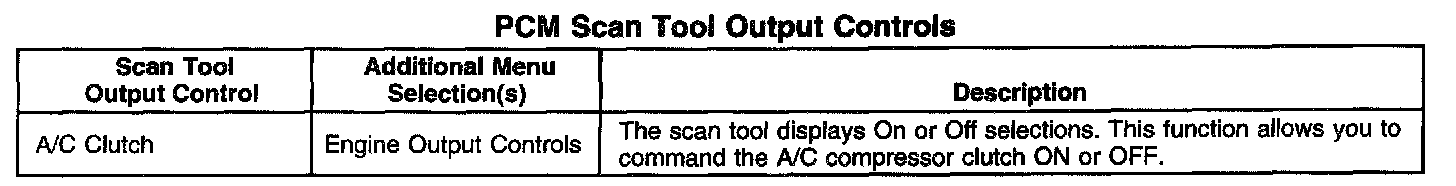 PCM Scan Tool Output Controls: