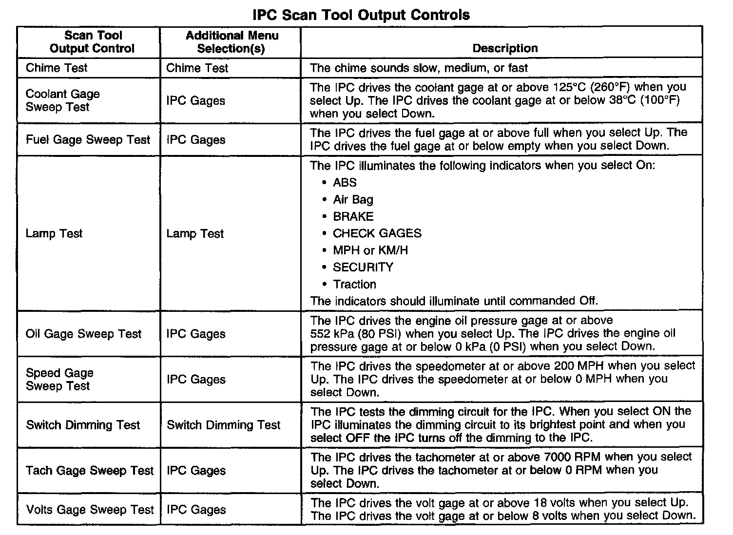 Scan Tool Output Controls - IPC