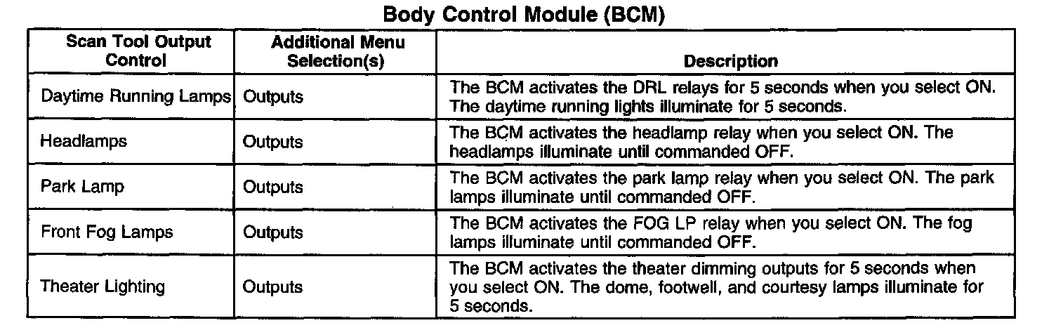 Scan Tool Output Controls - Body Control Module (BCM)