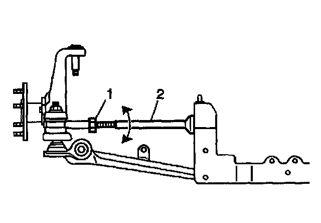 2. Rotate the inner tie rod (2) to the required toe specification setting. Refer to Wheel Alignment Specifications.