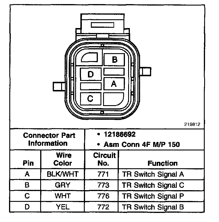 Transmission Range Switch Connector, Wiring Harness Side