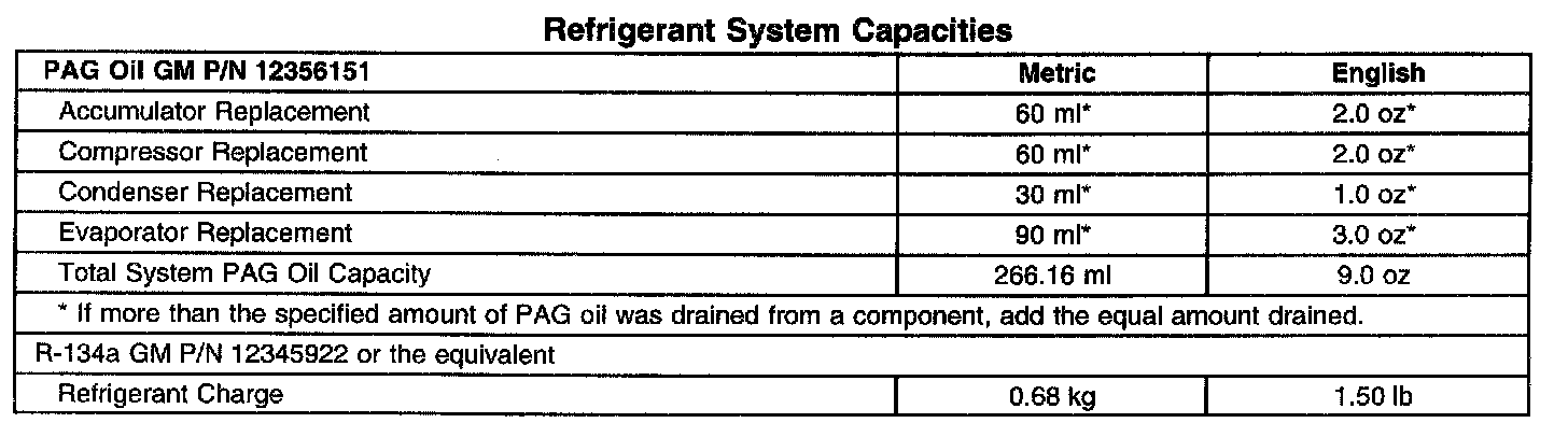 Refrigerant System Capacities: