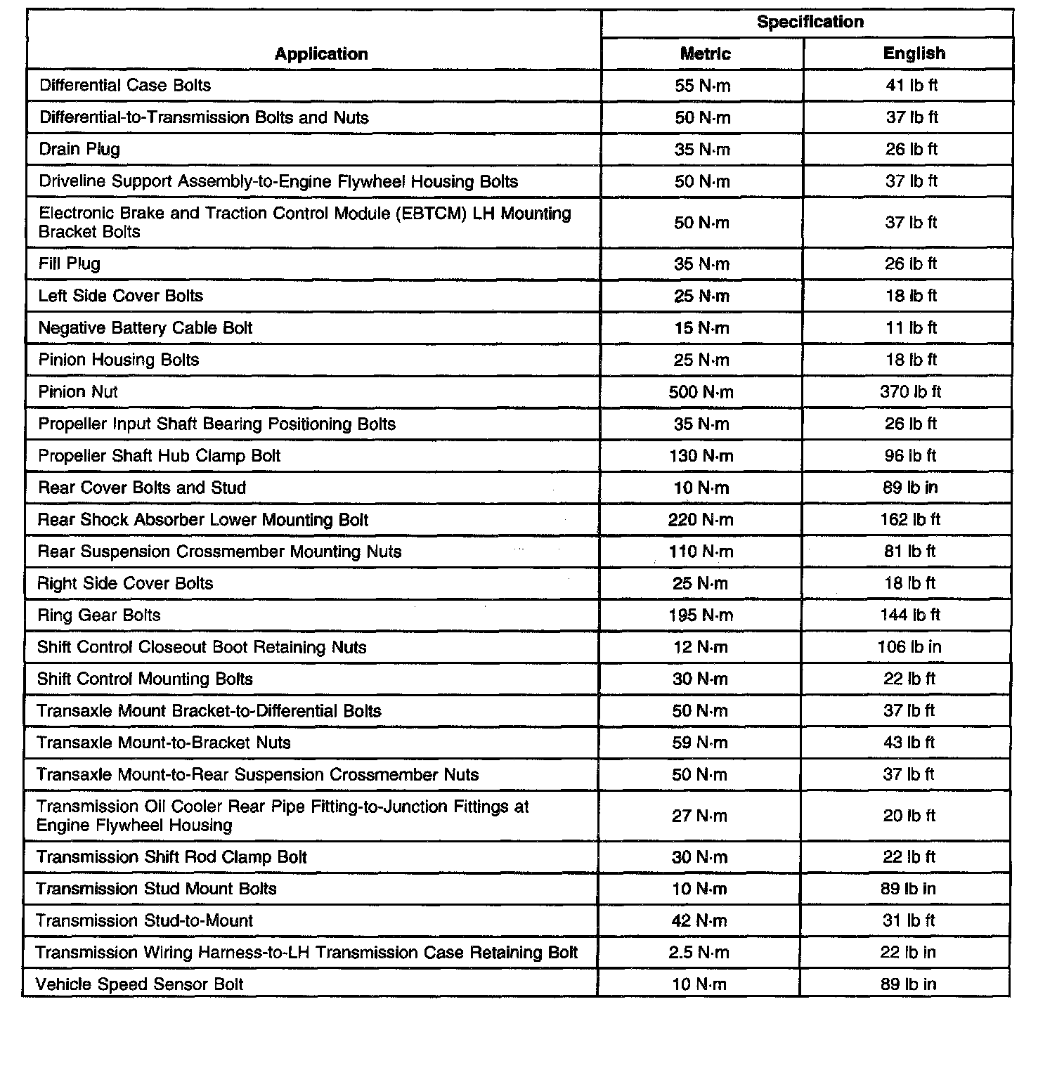 Fastener Tightening Specifications