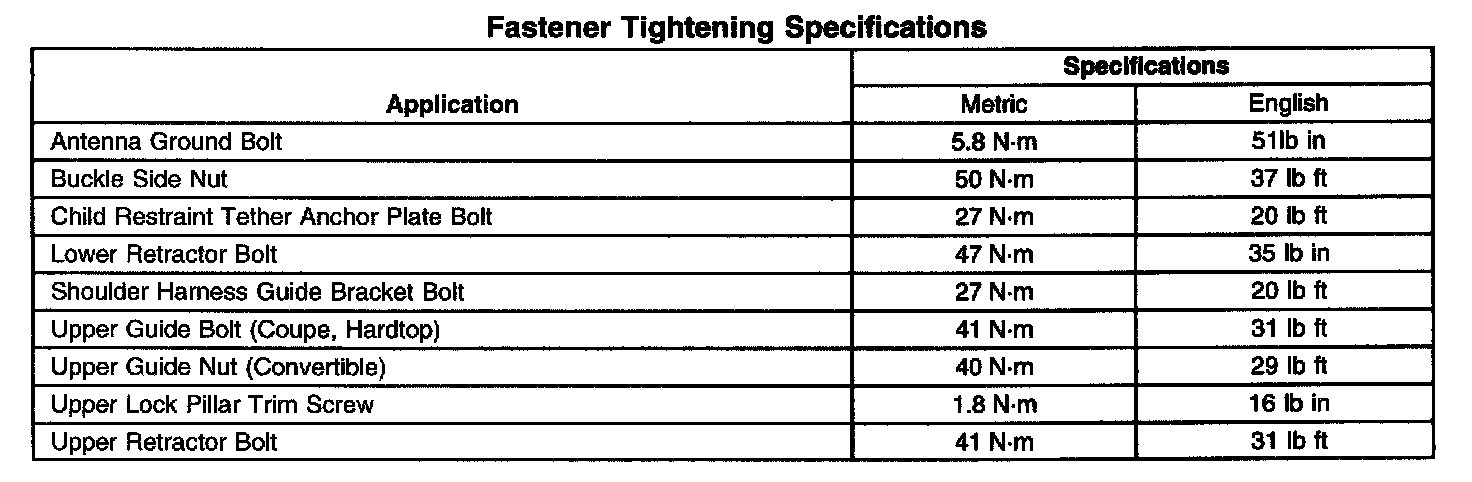 Fastener Tightening Specifications: