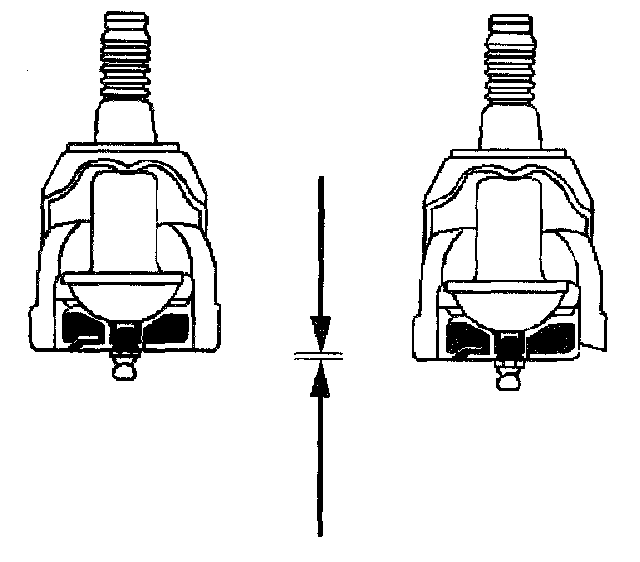6.1. Inspect by sight the lower ball joint for wear. The position of the housing into which the grease fitting is threaded indicates wear. This round housing projects 1.27 mm (0.050 inch) beyond the surface of the lower ball joint cover on a new ball joint. Under normal wear, the surface of the lower ball joint housing retreats inward very slowly.
