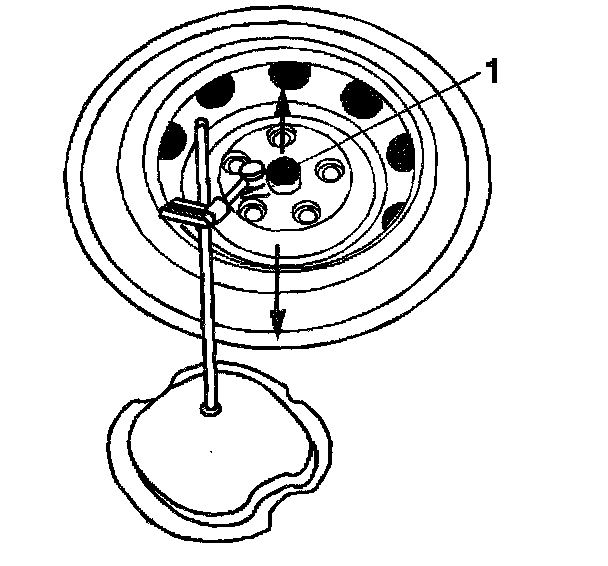 7. Place a J 8001 dial indicator (1 ) against the spindle in order to show vertical movement.