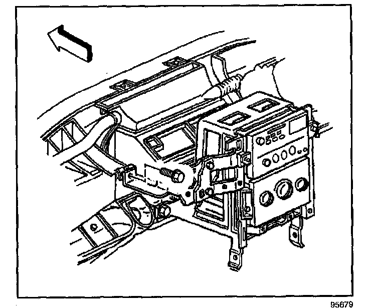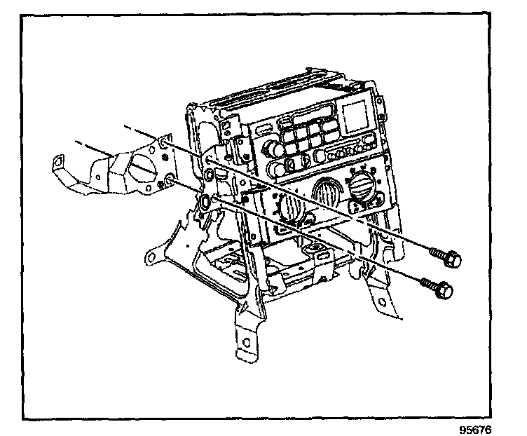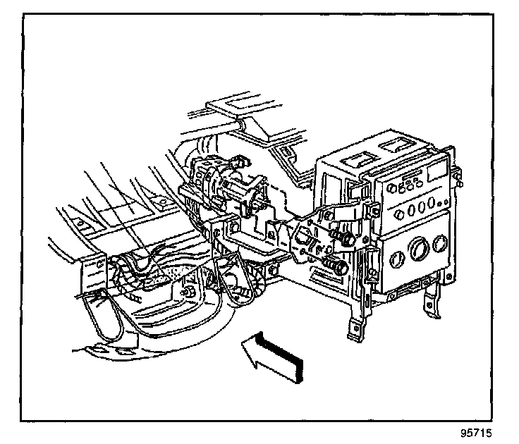 11. Remove the bolts retaining the ignition switch housing bracket to the IP center support bracket.