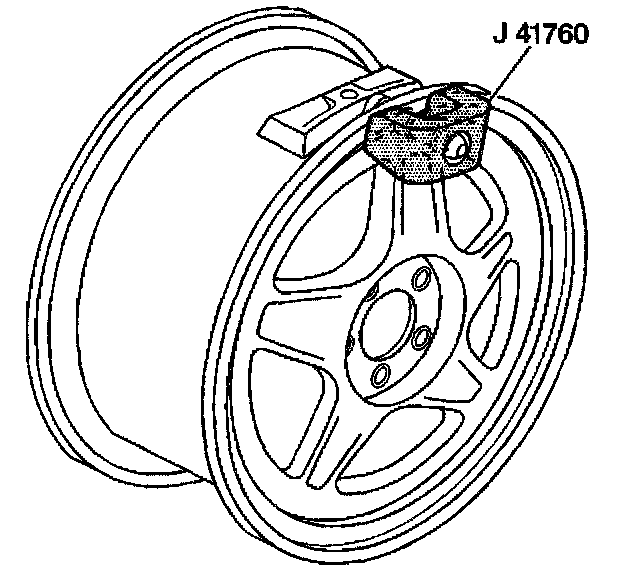 7. Install the J 41760 Tire Pressure Programming Tool over the left front valve stem.