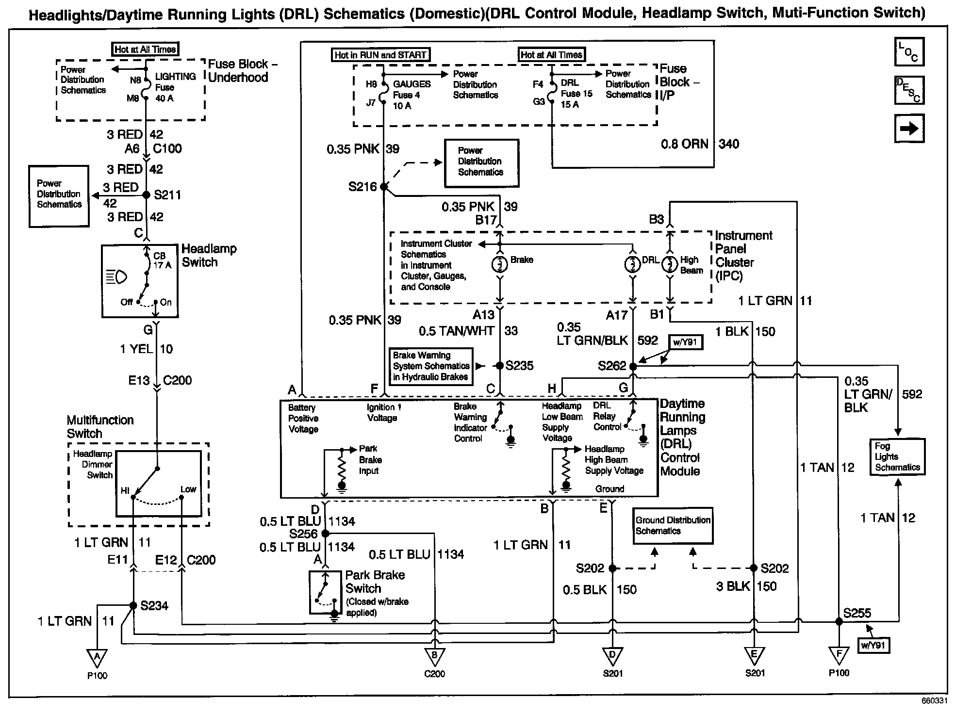 Headlights/Daytime Running Lights (DRL) Schematics: Domestic (DRL Control Module, Headlamp Switch, Multi-Function Switch):