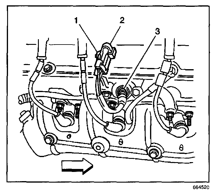 3. Connect the ECT harness connector (2) to the ECT sensor (3).