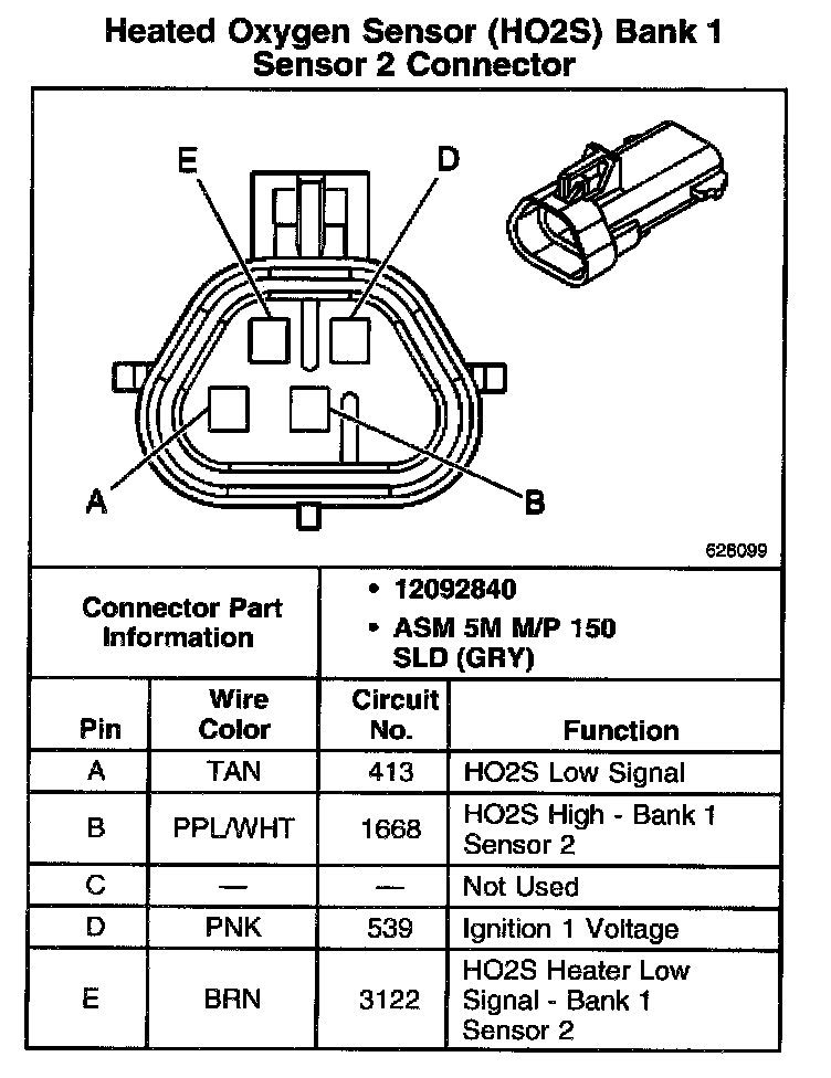 Heated Oxygen Sensor (HO2S) Bank 1 Sensor 2 Connector: