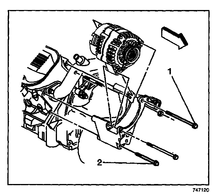 - Tighten the generator bracket bolts to 50 N.m (37 lb ft).