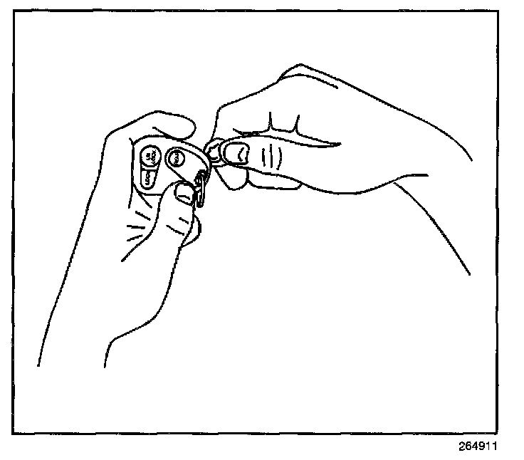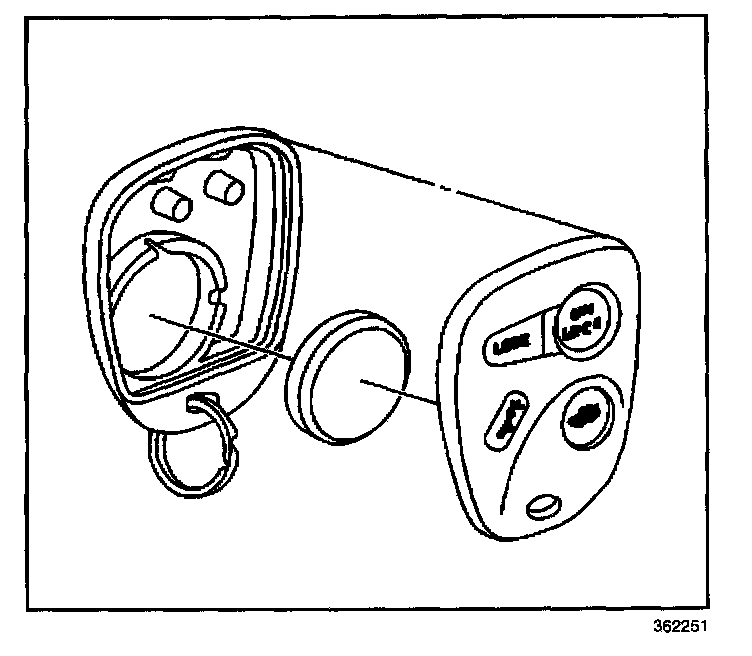 1. Insert a small coin between the 2 halves of the transmitter case at the slot provided near the key ring hole.
