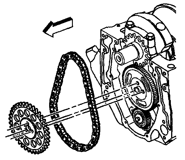 Notice: Align the timing marks before removing the timing chain. If it is necessary to turn either the camshaft or the crankshaft with the timing chain removed, loosen or remove the valve rocker arms. Turning either the crankshaft or camshaft with the timing chain removed may cause the pistons to contact the valves, resulting in damage.