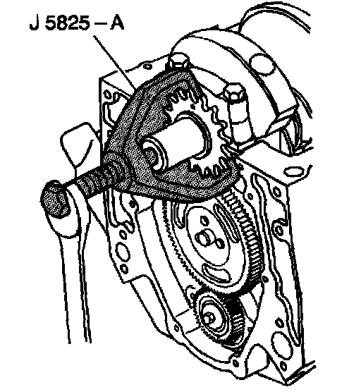 ^ Tools Required- J 5825-A Crankshaft Gear Remover