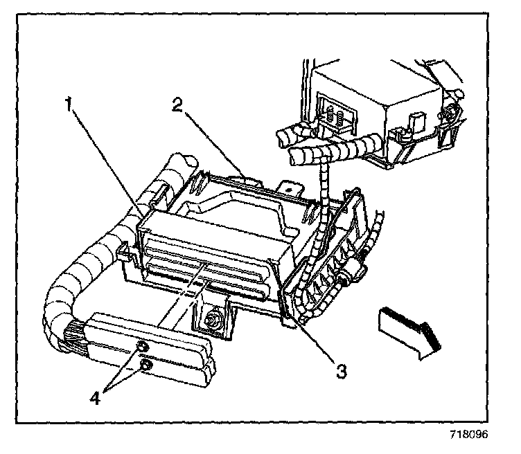 1. Install the PCM (1) to the PCM mounting tray (2).