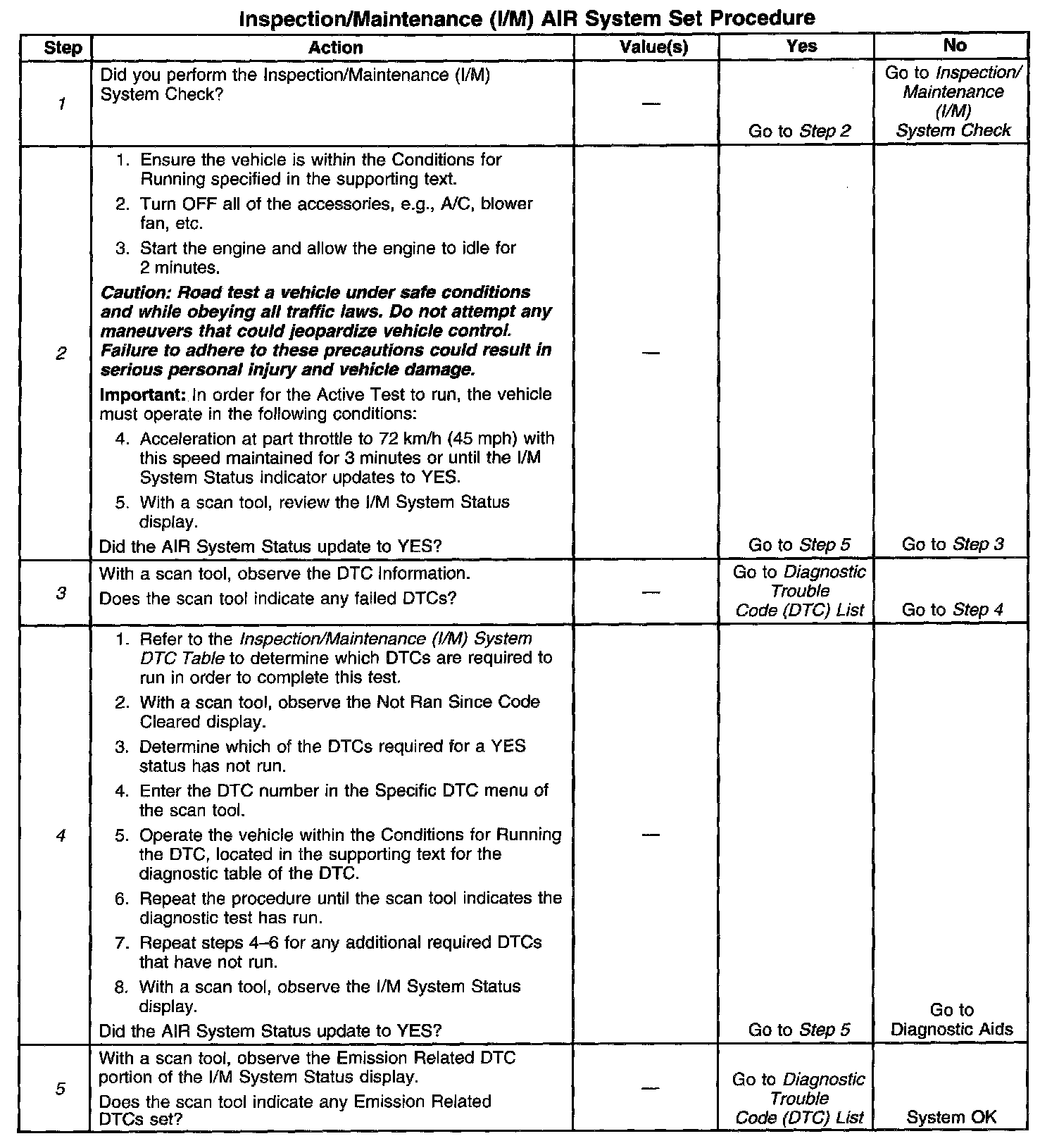1. Make sure you perform the I/M System Check before performing this test. Failure to do so may result in difficulty updating the status to YES. I/M System Check