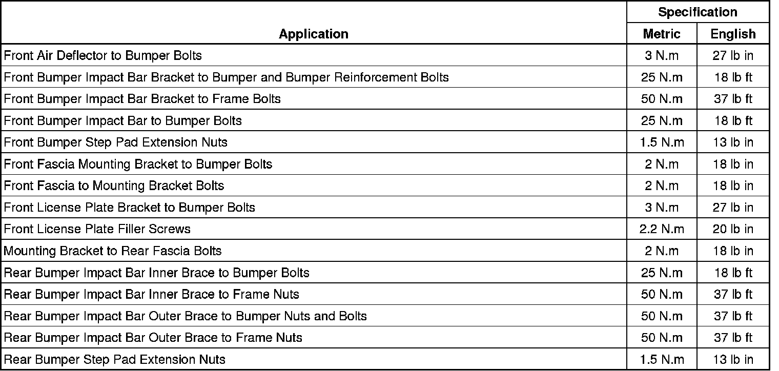 Bumper: Specifications