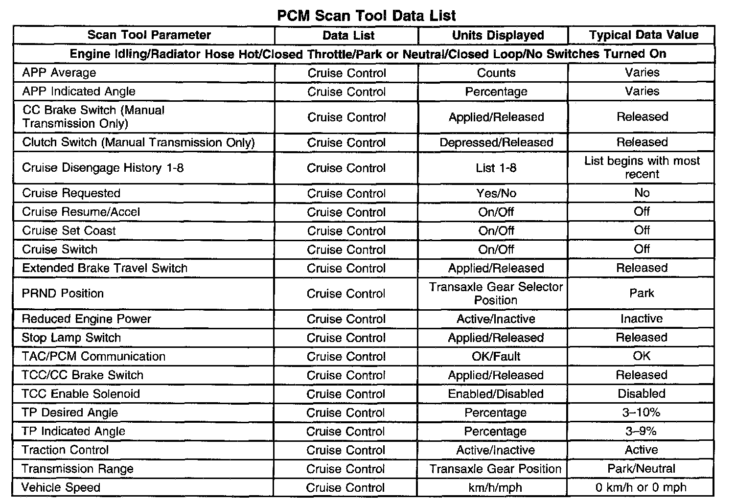 Scan Tool Data List - Powertrain Control Module (PCM)