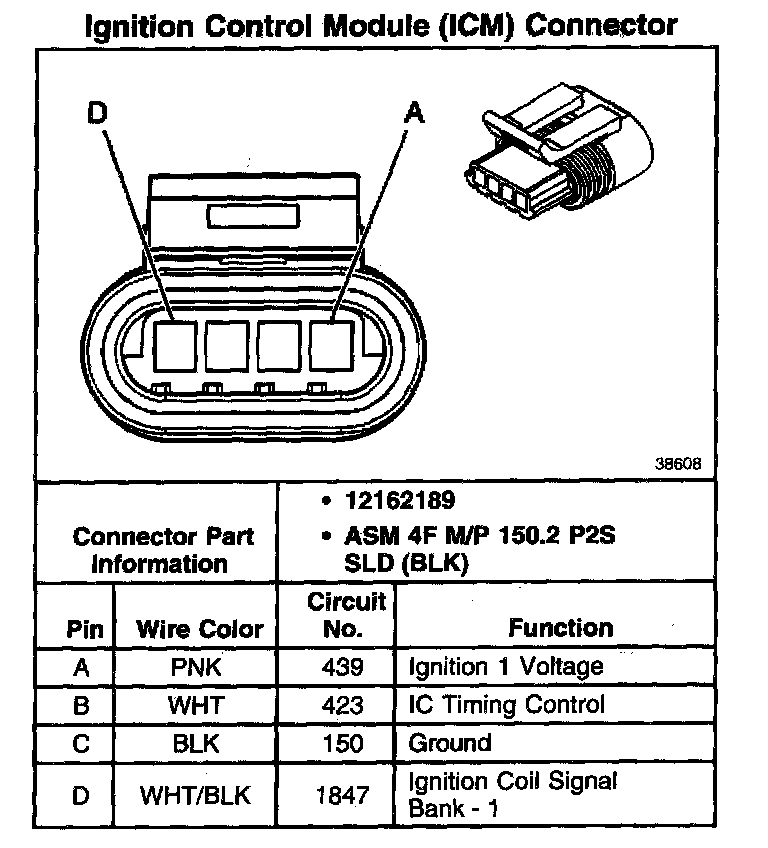 Ignition Control Module (ICM) Connector - Standard Models (Non-Alternative Fuels):