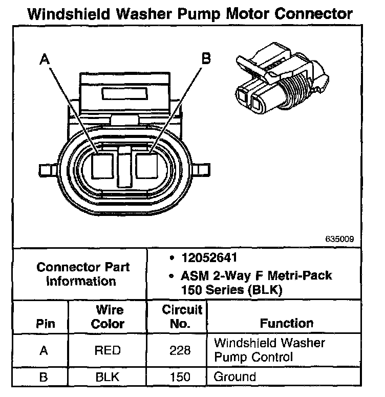 Windshield Washer Pump Motor Connector: