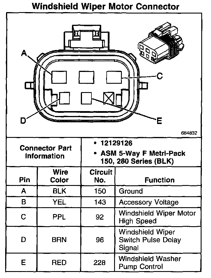 Windshield Wiper Motor Connector: