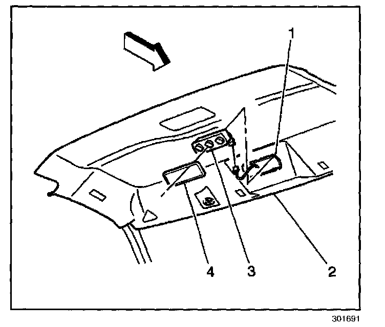 REMOVAL PROCEDURE1. Remove the front control switch bezel (4) from the headliner.