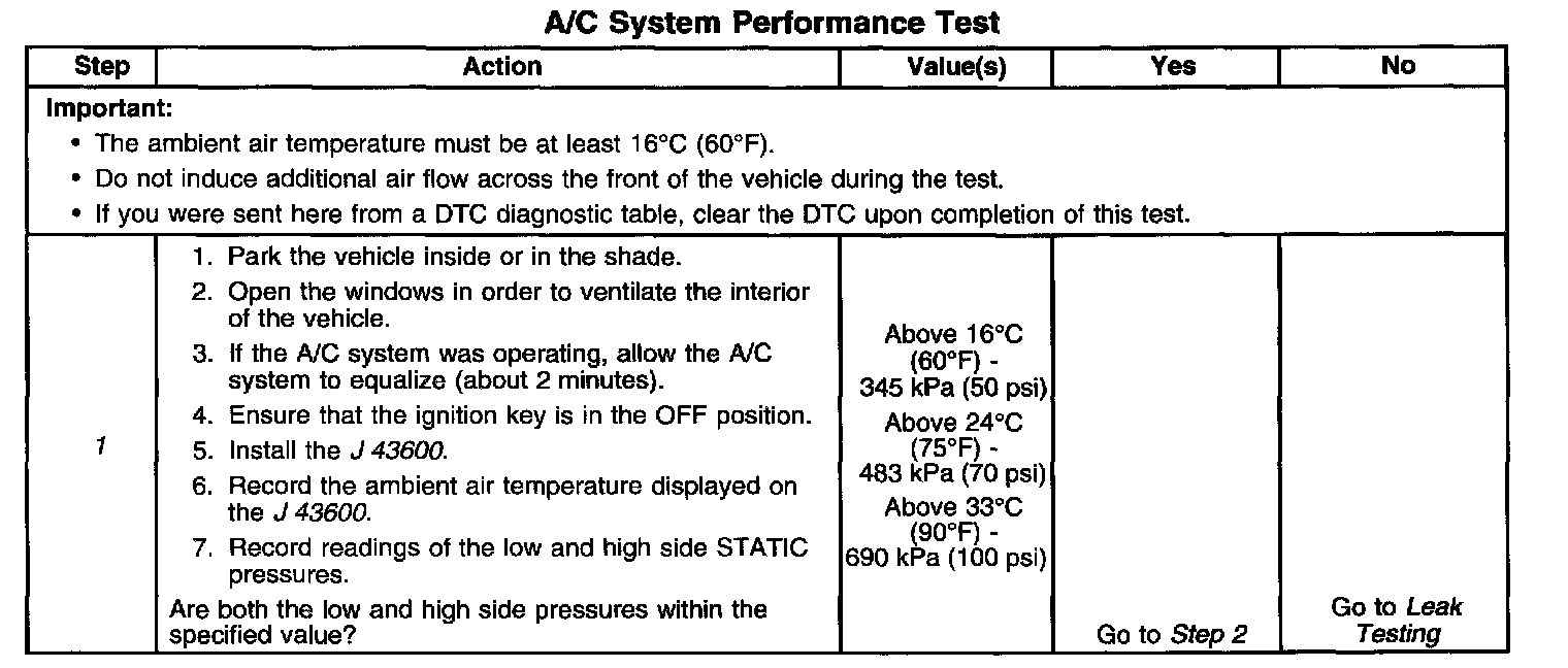1. This step determines if there is enough refrigerant in the A/C system in order to operate the system without damage.