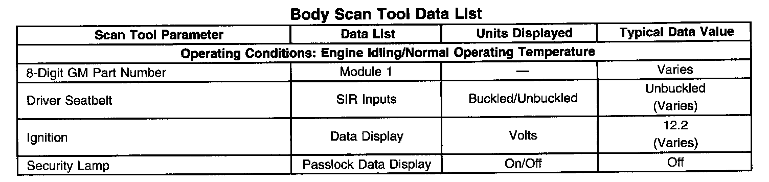 Body Scan Tool Data List: