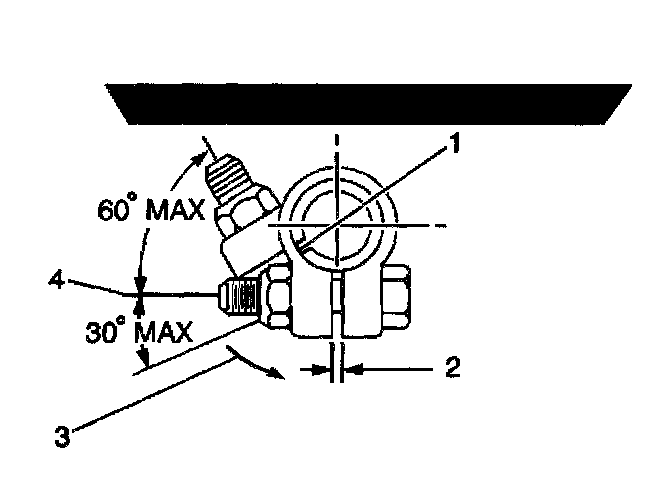 Important: Check the relationship of the adjuster tube to the clamp. The adjuster tube slot (1) and the clamp opening (2) must not be in the same position.