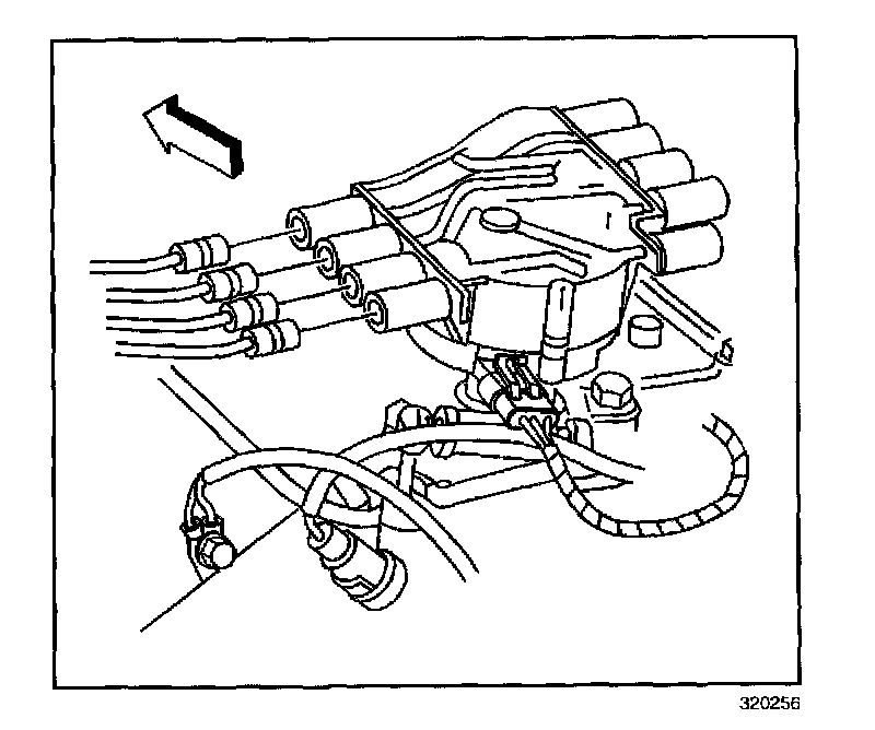 3. Disconnect the spark plug wires and ignition coil wire from the distributor.