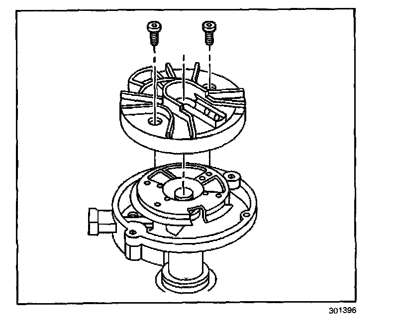 IMPORTANT: Do not use the old cap, CMP sensor, and rotor screws. Use replacement screws that have been coated with a thread locking compound. Precoated replacement distributor cap and CMP sensor screws can be acquired in the GM P/N 10475922 (pkg of 10 screws). Precoated replacement rotor screws can be acquired in the GM P/N 10475924 (pkg of 10 screws).