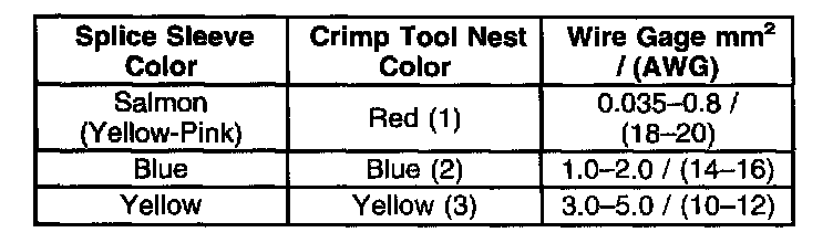 4. Select the proper sealed splice sleeve according to the wire size. Refer to the table at the beginning of the repair procedure for the color coding of the splice sleeves and the crimp tool nests.