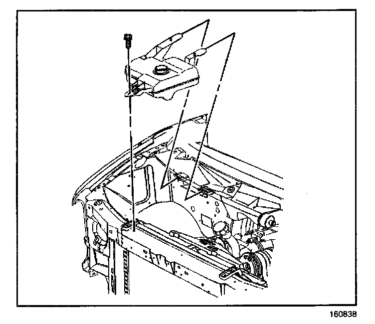 8. Position the coolant recovery reservoir and install the mounting bolt.