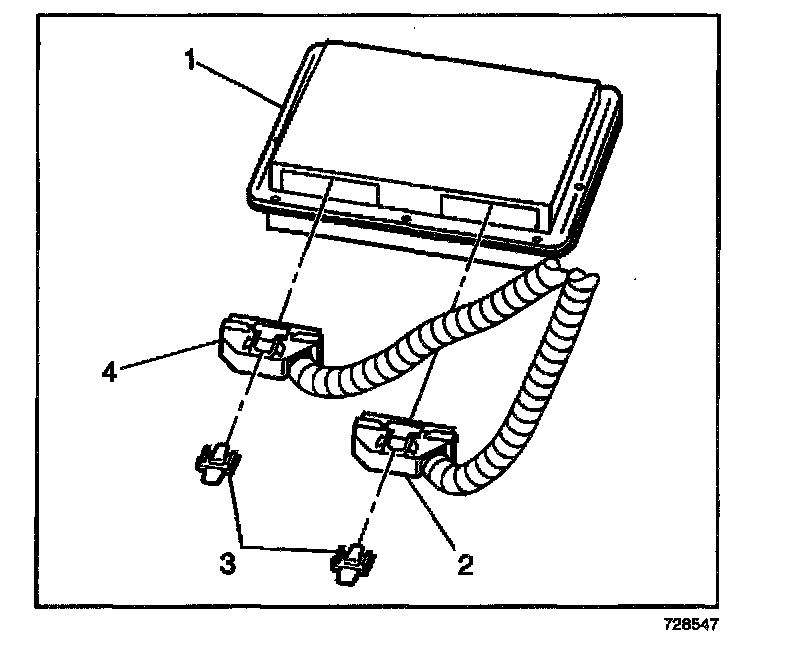 5. Remove the connector position assurance locks (3) and disconnect the electrical connectors (2, 4) from the ECM(1).