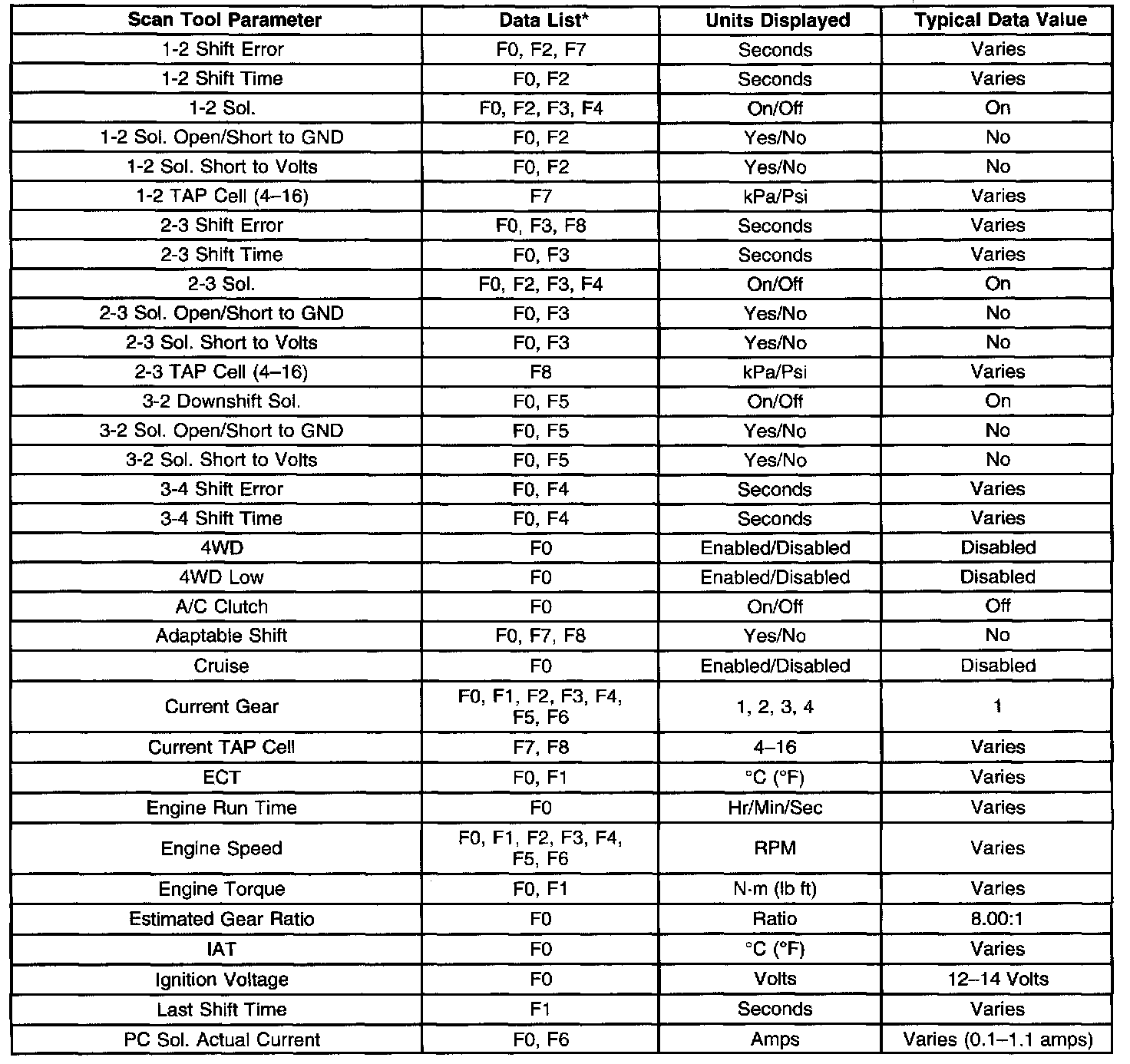 Only the parameters listed below are used for diagnosing. If a scan tool displays other parameters, the values are not recommended by General Motors for use in diagnosis. Scan tool values below were recorded under the following conditions: