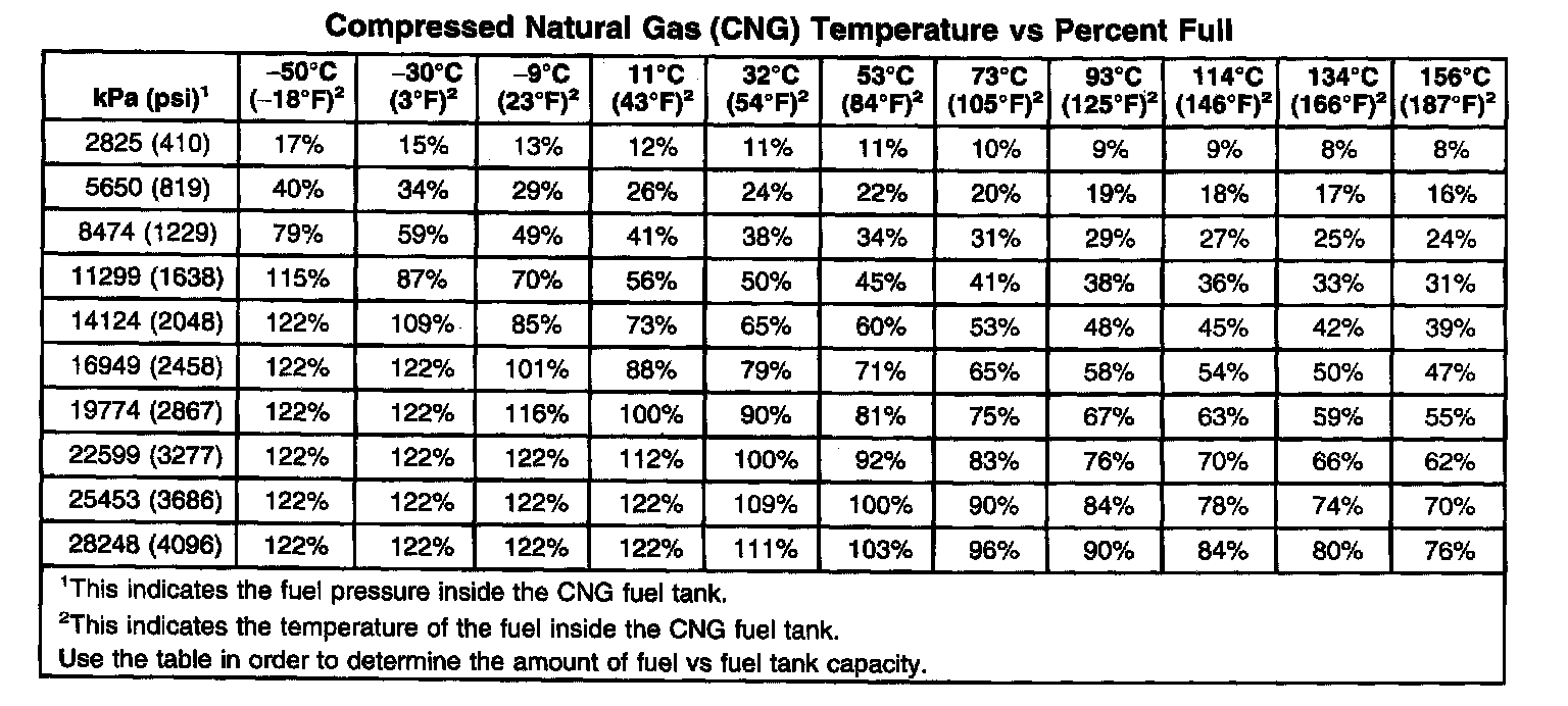 Compressed Natural Gas (CNG) Temperature vs Percent Full